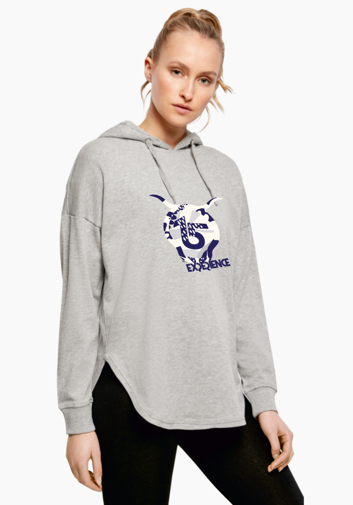 Sweat à capuche oversize Expérience. Coupe loose. Bord-côte aux poignets. Fentes latérales.