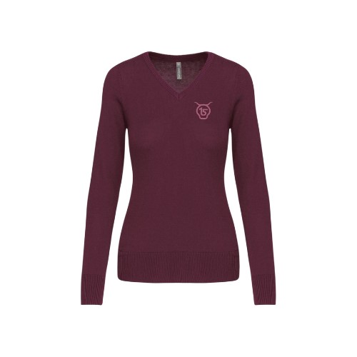 Pull Salers 15. Col en V. Broderie : Salers 15 Couleur : Bordeaux Matière : 50 % coton, 50 % acrylique