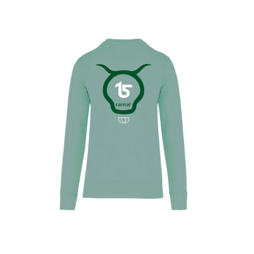 Sweat col rond Salers 15 coeur et dos Sérigraphie : Tête 15 Coeur et Dos Couleur : Sauge Matière : 85% Coton Bio / 15% Polyester Grammage : 280g/m²